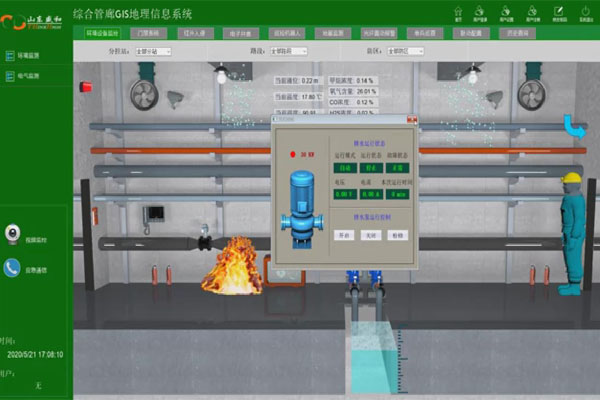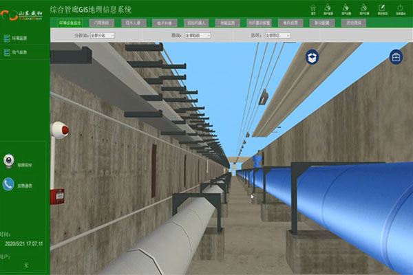 山东盛和电子有限公司城镇综合管廊地理信息管理平台的基础数据库和服务器集成在监控与报警统一管理信息平台内,并在平台上提供人机交互界面。系统预留与市政基础设施地理信息系统联通的通信接口。